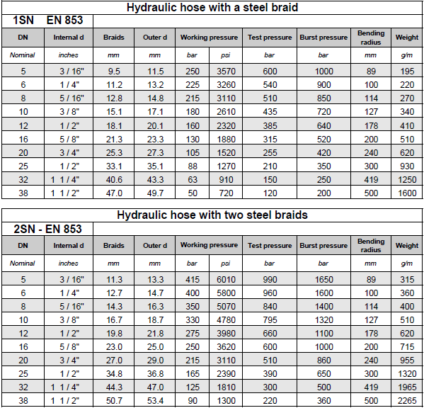 - Standards - EN 853 2SN, SAE 100R2AT, ISO 1436-1 2SN/R2AT